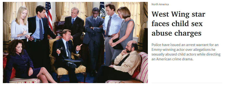 Here is what people saw online on the Herald Sun, ‘West Wing star faces child sex abuse charges’ and it shows the stars of the show.